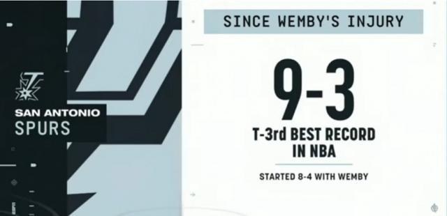 要说这个赛季的马刺和上个赛季有什么不同,那就是没有文班亚马的表现。这个赛季的马刺再也不会没有文班亚马就一泻千里,相反他们在近期无文班亚马的比赛中交出了9胜3负的成绩单,昨天还斩落了湖人,同期战绩全联盟第3,令人咋舌。无文班亚马的马刺为何这么狠?马刺取胜的真正原因是什么?